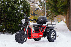 The all new Boomerbeast 2D is the mobility scooter for all roads. Made in Canada and exported worldwide it is the most advanced mobility scooter in the market place. The AWD allows the Boomerbeast to go on dirt roads, snow, sand or regular pavement. Range is up to 50 km on the standard version and up to 80 km with the lithium ion battery for the Deluxe version. If you’re looking for an awesome 3 Wheeled Scooter, this is definitely it. Daymak can build to spec and customizations available include double le seats, extended racks, cargo boxes, carriers with heat or refrigerated, specialty horns. The Boomerbeast allows just about anyone to enjoy the outdoors as it was meant to. The Boomerbeast gives you balance speed and a certain ruggedness that will turn heads when you ride by. Don’t settle. Create your own roads and don’t let anything stop you from going where you want. Put a little bit of excitement back in to your day to day and embrace what life has to offer with the Boomerbeast!